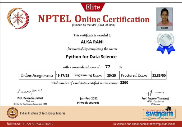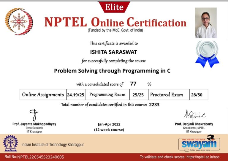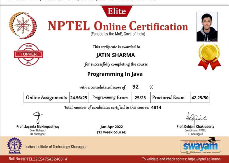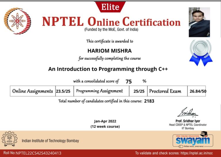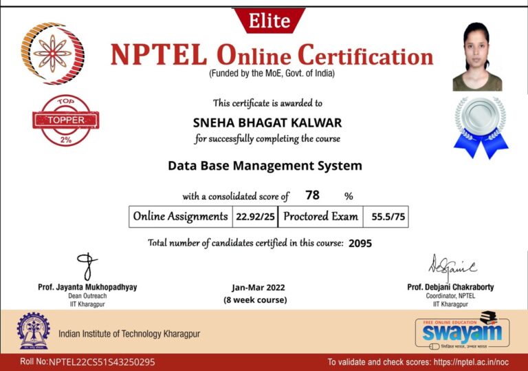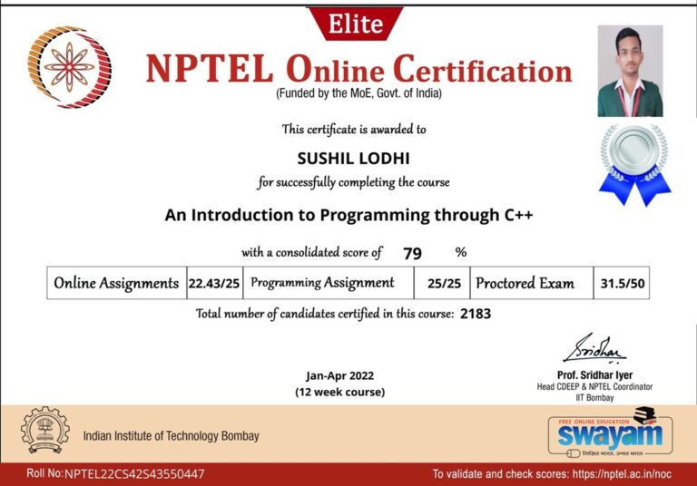 Our college is a LOCAL CHAPTER OF SWAYAM-NPTEL headed by — Professor (Dr.) Amitbodh Upadhyaya , our Single Point of Contact (SPOC). To take this initiative forward and to encourage our students across colleges to participate in this initiative, we are encouraging the students and faculty members to participate and many have won the certification in different courses.